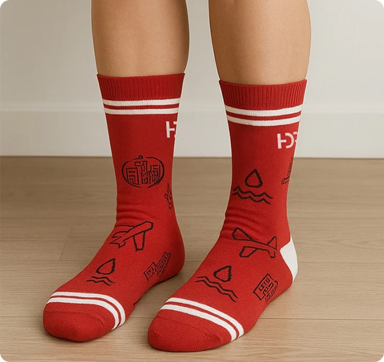Ordering your custom-branded socks has never been easier. Choose your style, share your design, and we will guide you from concept to doorstep with free design support and lightning-fast delivery.