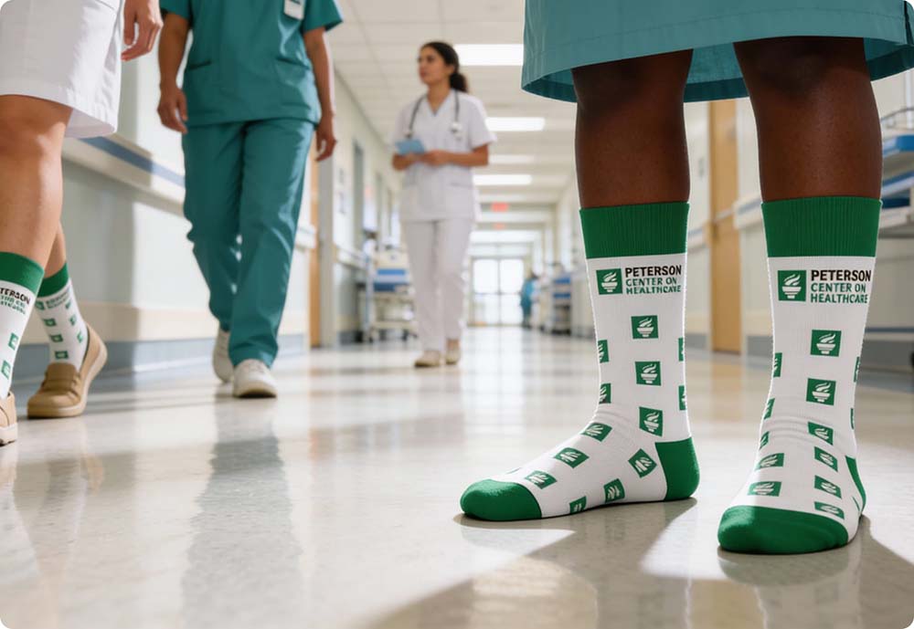 Custom socks offer a practical and thoughtful way to reinforce your healthcare brand while prioritizing comfort and hygiene. Designed for doctors, nurses, technicians, and support staff, branded socks provide all-day comfort during demanding shifts while maintaining a clean, professional appearance.