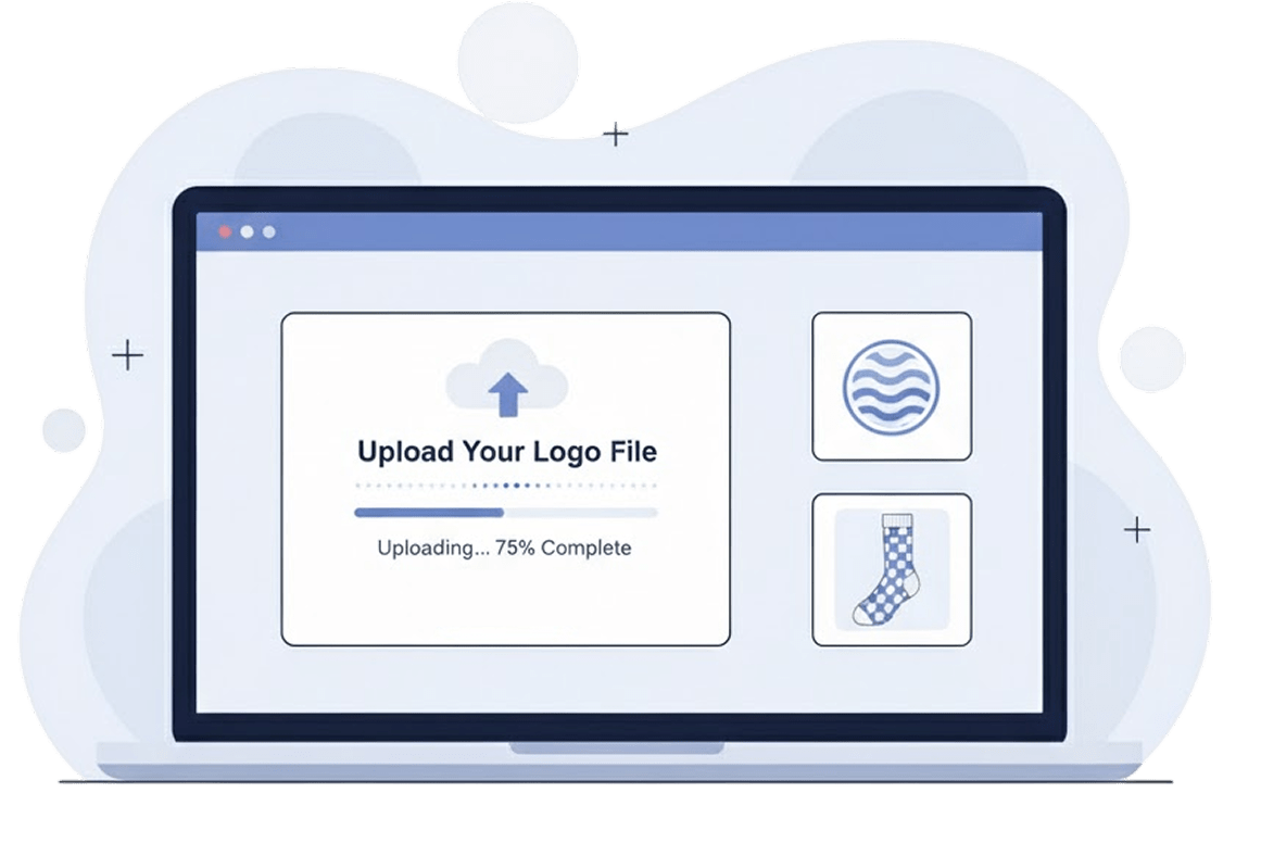 Your custom sock journey starts with your logo. Simply share your design details through our quick online form. Upload your logo or any creative ideas you have, and let our design experts handle the rest. We’ll craft exclusive custom sock design options that perfectly match your brand identity and style preferences.