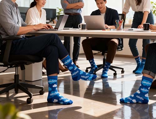 One-size-fits-most custom socks simplify ordering, inventory, and distribution.