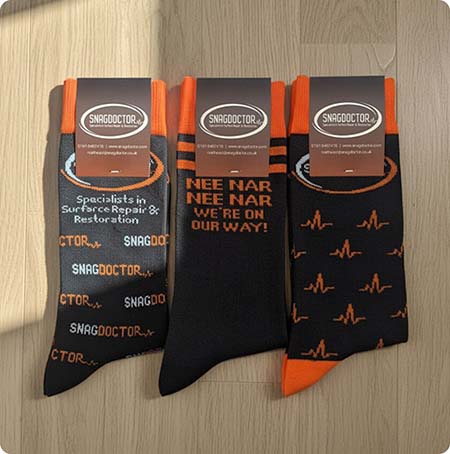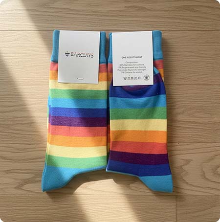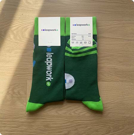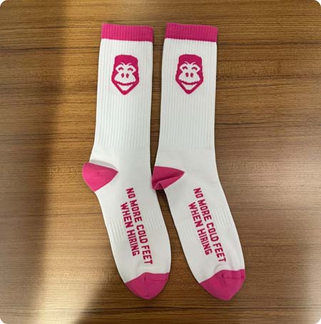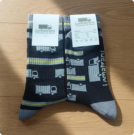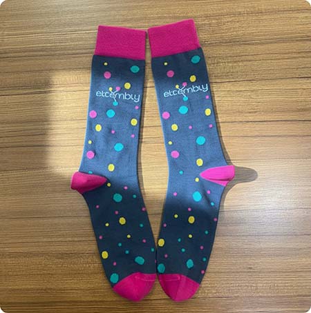 Explore our extensive gallery featuring custom logo socks, branded socks, and unique sock designs crafted for companies of all sizes. From bold patterns to subtle branding, our creations showcase the endless possibilities of custom sock printing.