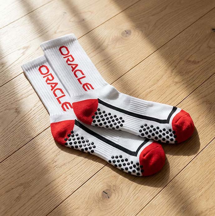 “We were looking for a unique giveaway for our partner conference, and the custom socks were a total crowd-pleaser. Everyone loved them, and they looked fantastic with our Dell blue spot on. Will definitely order again!”